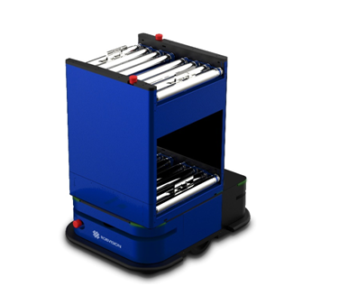 针对该环节中投入人力进行重复配送不增值现状,采用双层辊筒AGV 配合SMT上板机实现magazine自动上下料。